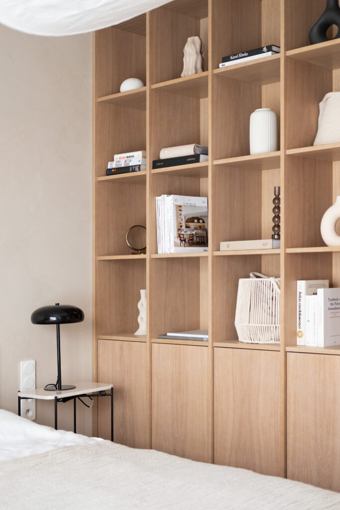 The microcement-covered wall adds uniqueness to the interior and breaks up the monotony of the other walls.