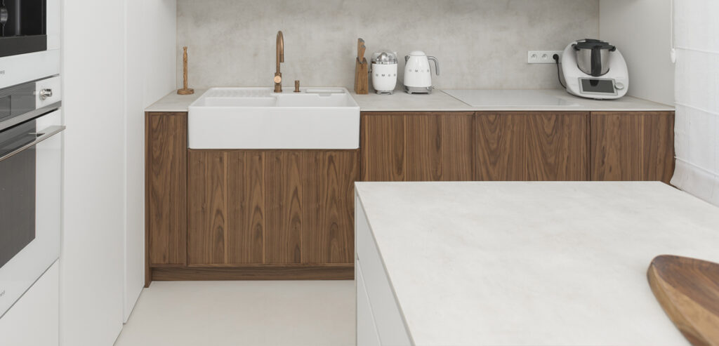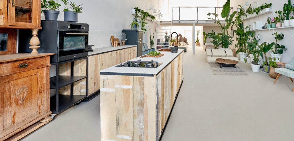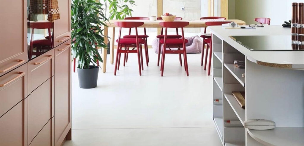 Recently, there has been a strong trend towards using microcement in kitchen interior design. This is because it is so versatile that it works practically anywhere – on floors, walls and as a finish for countertops.