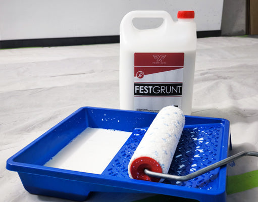 4. Application of microcement: FESTGrunt, first layer of microcement, sanding, vacuuming, second layer of microcement, sanding, vacuuming, primer under the sealer, sealer (2 coats) with 3K PLUS – increasing abrasion resistance.