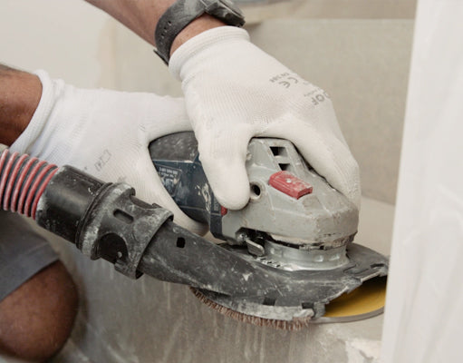 1. Before applying microcement to the tiles, roughen them with a sander.