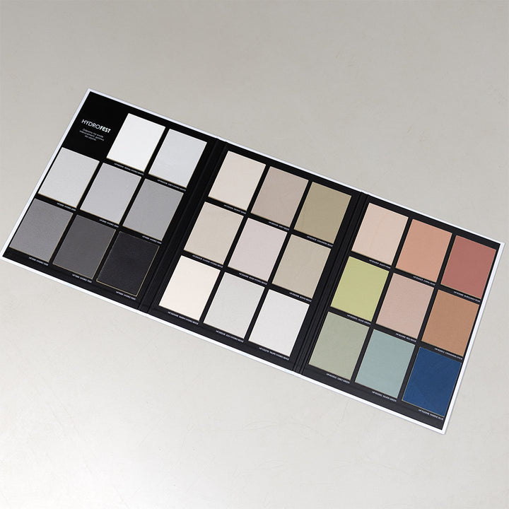The microcement color book is a practical tool that makes it easy to choose the perfect shade for any project. You will find colors from the standard HydroFest system palette.