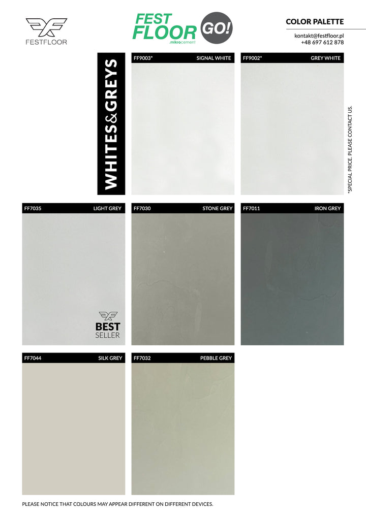 The product includes microcement FESTFLOOR GO! - 5 kg [Consumption ~ 1.5 / kg m²]
