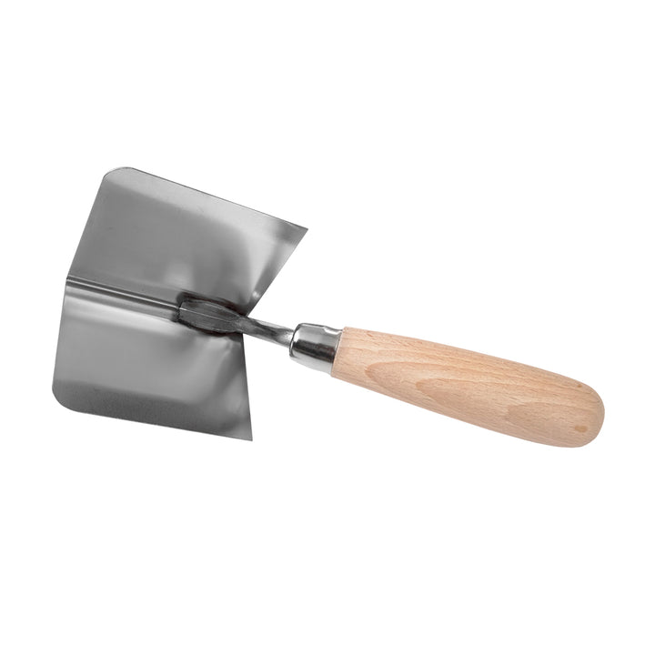 The trowel is used for finishing interior corners of walls, ceilings and stairs.