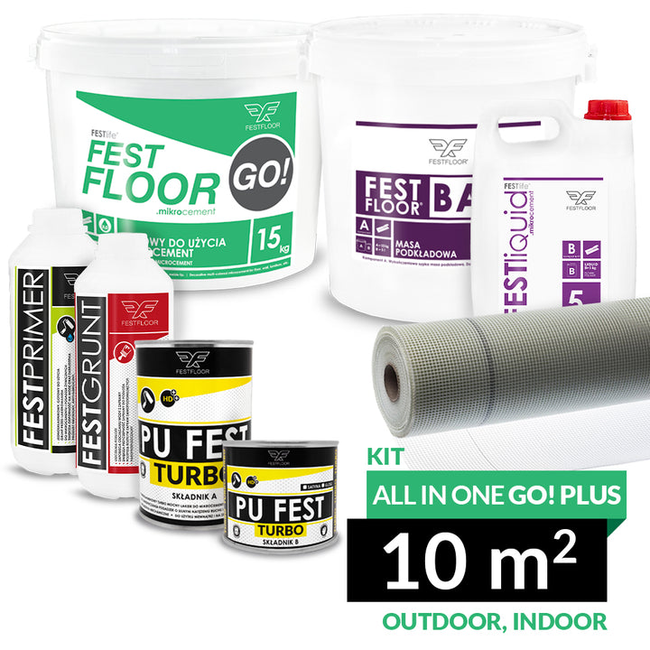 FESTFloor BAZA with mesh: 20 kg FESTFLOOR BAZA microcement (15 kg FESTPowder BAZA + 5 kg FESTLiquid) + 10 m2 fibreglass mesh