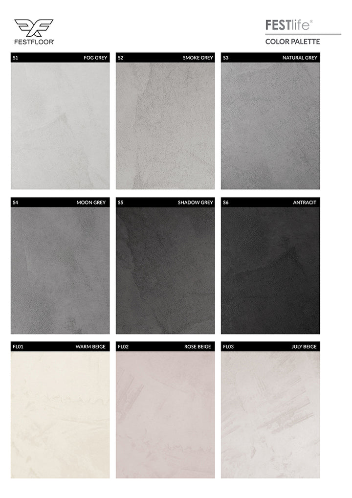 - Microcement FESTFLOOR LIFE - 17.5 kg (12.5 kg + 5 kg), which is an innovative product made from a mixture of cement and polymers. It is a product that will work well in offices as well as catering buildings, warehouses or public areas,